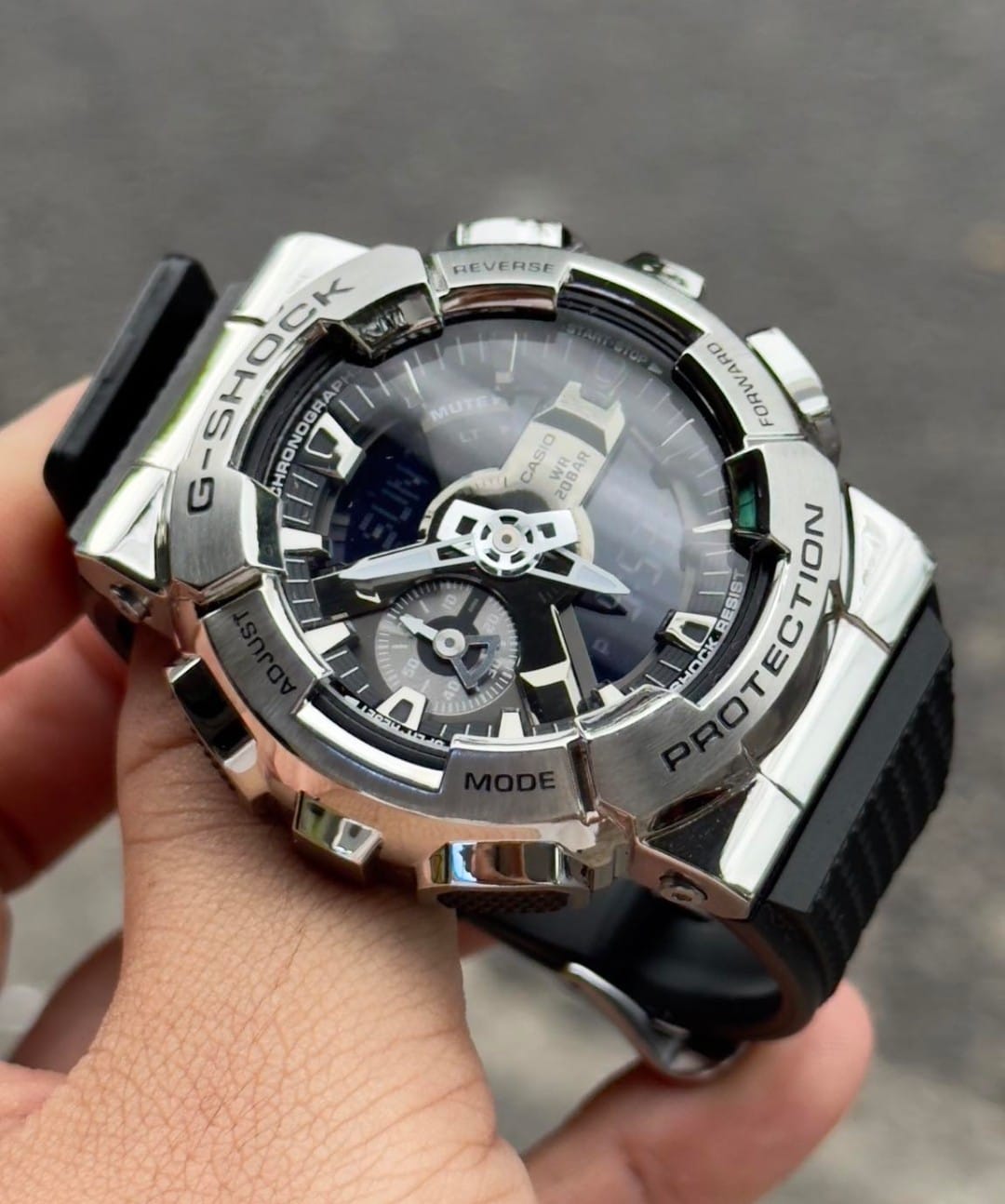 Casio G-Shock GM-110-1ADR Silver Analog-Digital Dial Black Resin Strap Men’s Watch