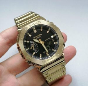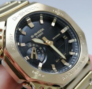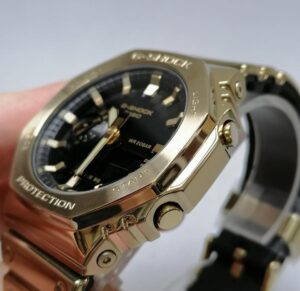 - The glass fiber-reinforced resin case is covered with a stainless-steel bezel. The complex bezel form is crafted using meticulous forging, cutting, and polishing processes, right down to the connecting portions on the underside.