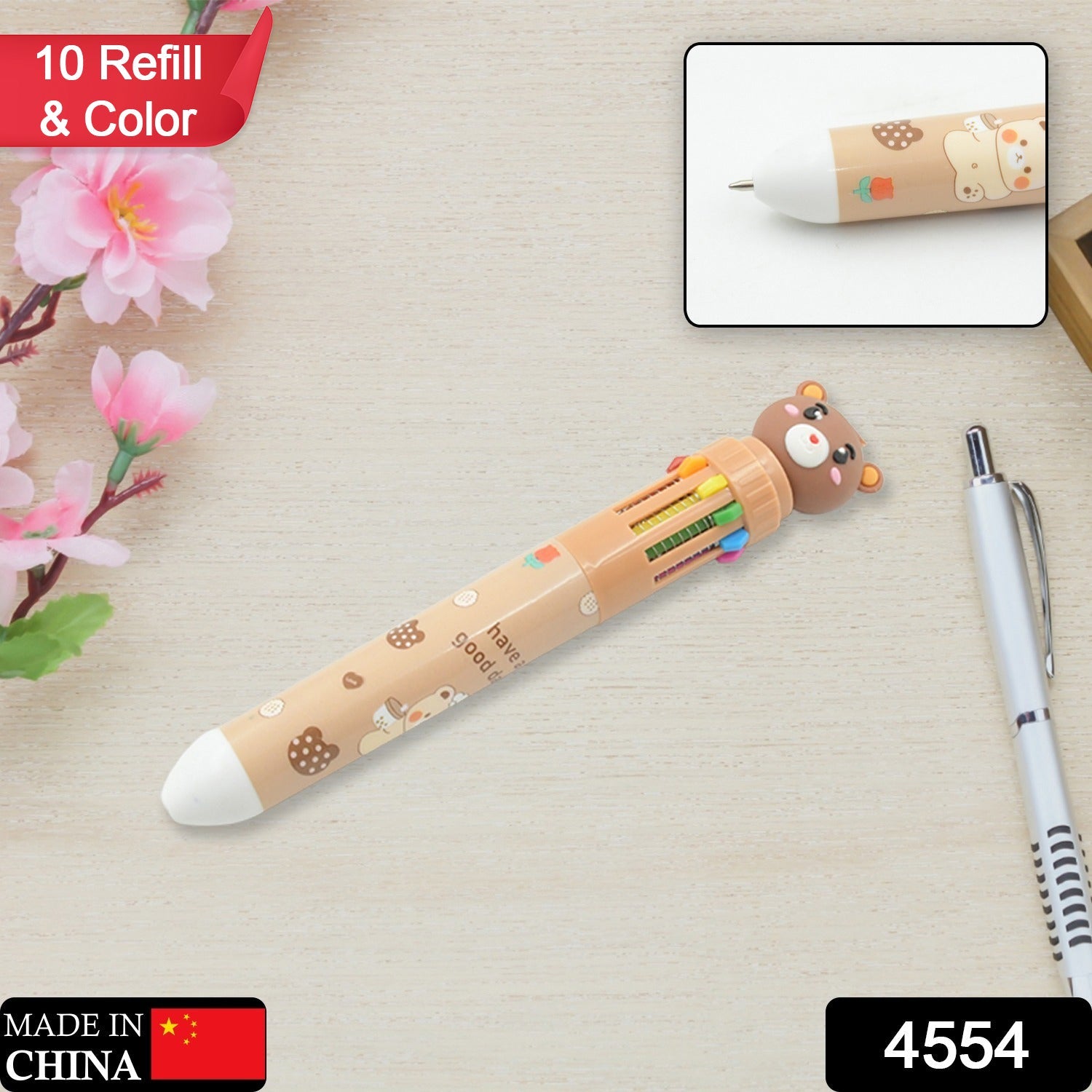 Kids 10-in-1 Color Pens Ballpoint Pen Set for Kids Cartoon Head Writing Pen for School Office Stationery Kit, Teddy Bear (1 Pc)